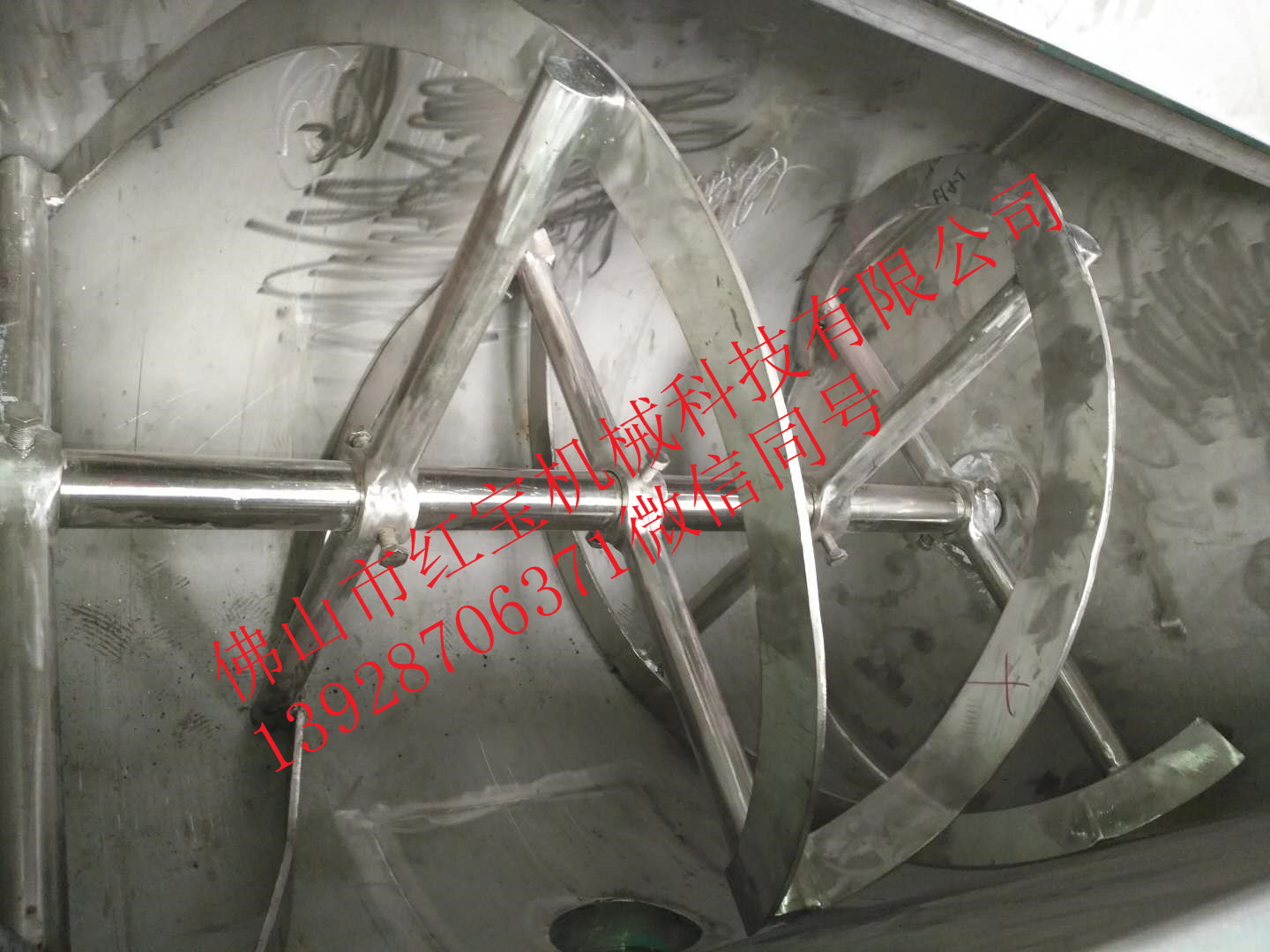1、主軸上布置雙層螺旋葉片,內(nèi)部螺旋將物料向外側(cè)輸送,外部螺旋將物料向內(nèi)部聚集。物料在雙層螺旋帶的對(duì)流運(yùn)動(dòng)下,形成一個(gè)低動(dòng)力高效的混合環(huán)境。本混合物料能夠在較短時(shí)間內(nèi)均勻混合無死角。
