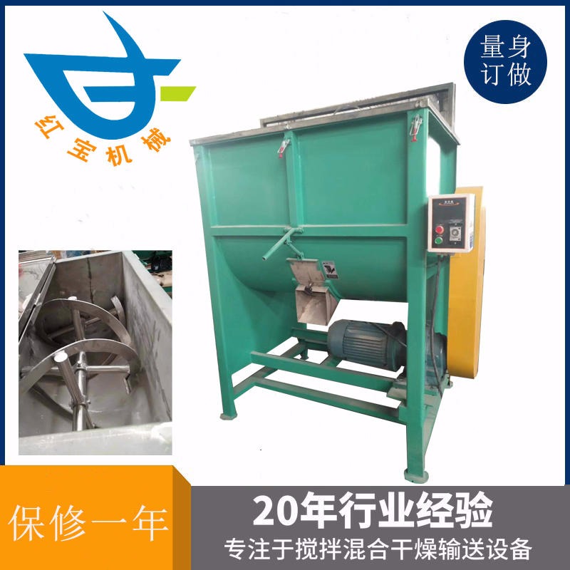 5、臥式干粉混合攪拌機為臥式筒體,表里二層螺旋帶具有共同的結構,工作平穩、質量可靠,噪音低,運用壽命長,裝置修理方便,并有多種拌和器結構,用處廣泛的多功能混合設備。臥式螺條混合機在混合機作用不受顆粒的巨細密度影響。