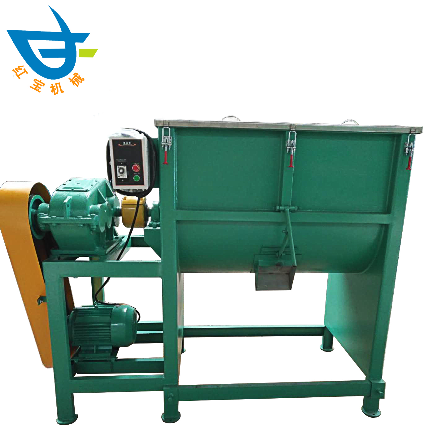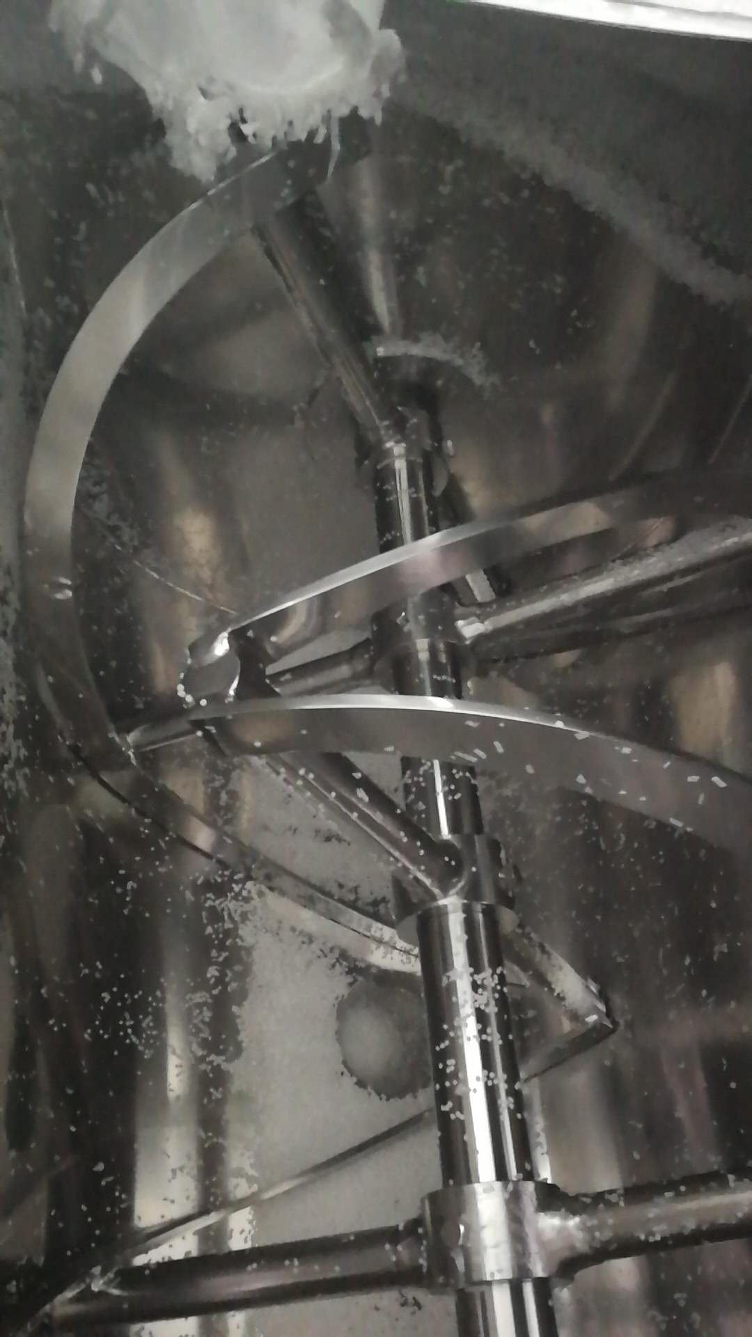 臥式筒體內(nèi)裝有雙軸旋轉反向的漿葉,漿葉成一定角度將物料沿軸向、徑向循環(huán)翻攪,使物料迅速混合均勻臥式混合機性能特點減速機帶動軸的旋轉速度與槳葉的結構會使物料重力減弱,隨著重力的缺乏,各物料存在顆粒大小、比重懸殊的差異在混合過程中被忽略。臥式攪拌桶內(nèi)有內(nèi)外兩層螺帶,在減速機的作用下,強勁有力地帶動主軸的旋轉,螺帶呈一定角度將物料沿軸向、徑向循環(huán)翻動攪拌,在交錯安置的螺帶快速劇烈的翻騰拋灑下,使物料快速攪拌混合均勻,能達到很好的混合效果。螺帶與桶壁的間隙可調至接近零位,有效地減少了物料殘留量,適合兩種以上物料的混合,出料口在設備下部,出料順暢,殘留量少。